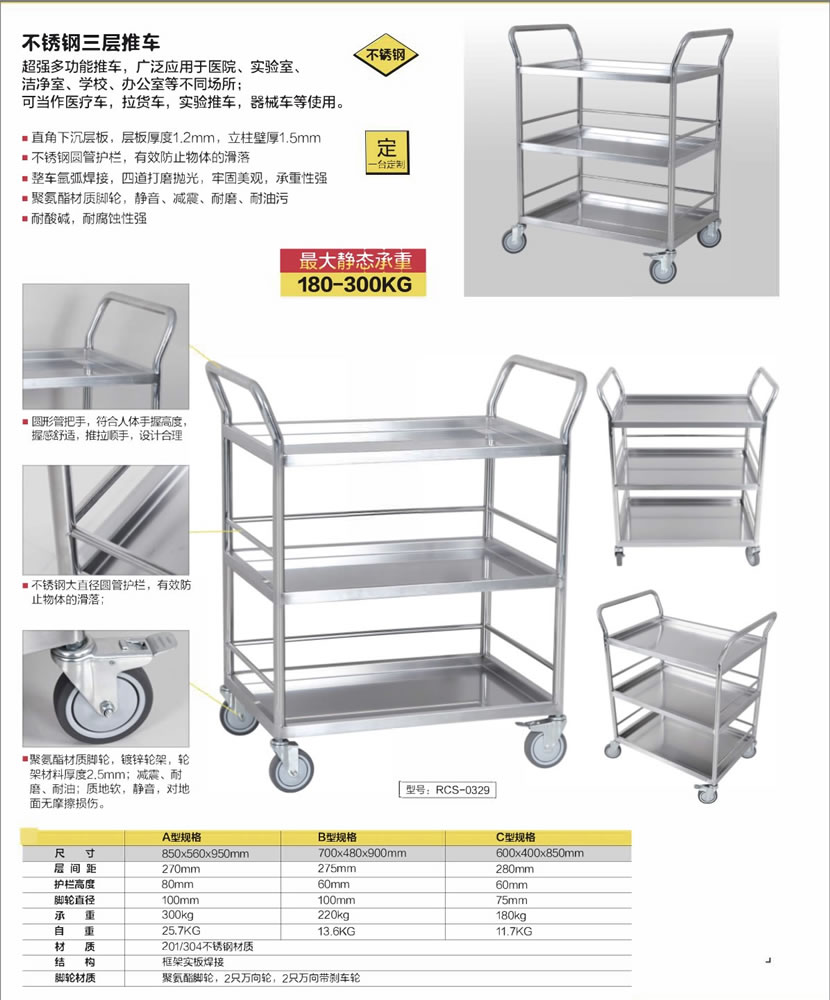 不銹鋼三層推車